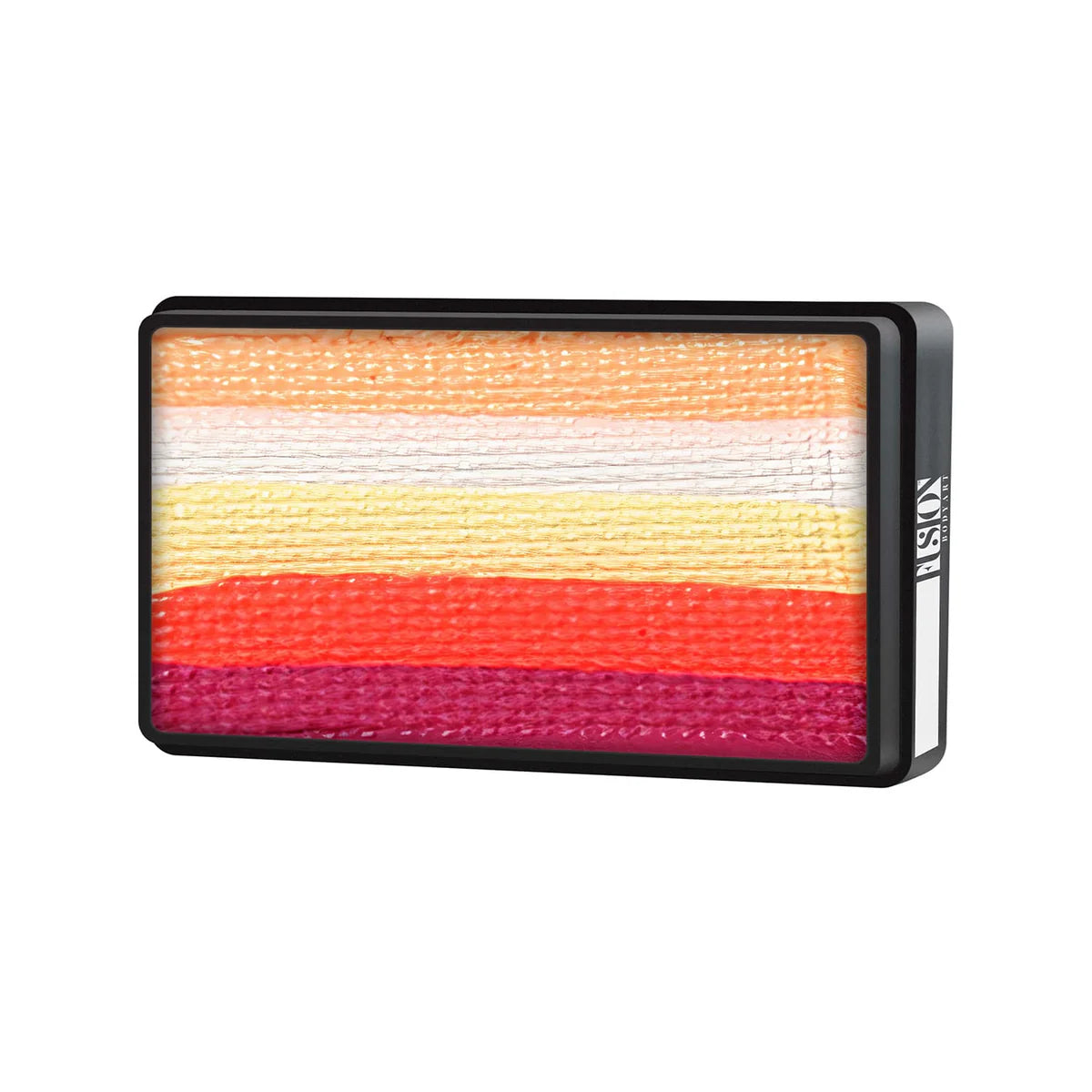 Fusion Body Art’s split cakes are a perfect cake for painting 1 stroke flowers, butterflies, ponies, kitties and so much more! It is a bold combo of beautiful pinks and white that will be very useful in your face painting kit! Quickly paint 1 stroke roses on the arm, or a pretty 1 stroke princess crown across the face of your littlest clients. Everyone will love the results!