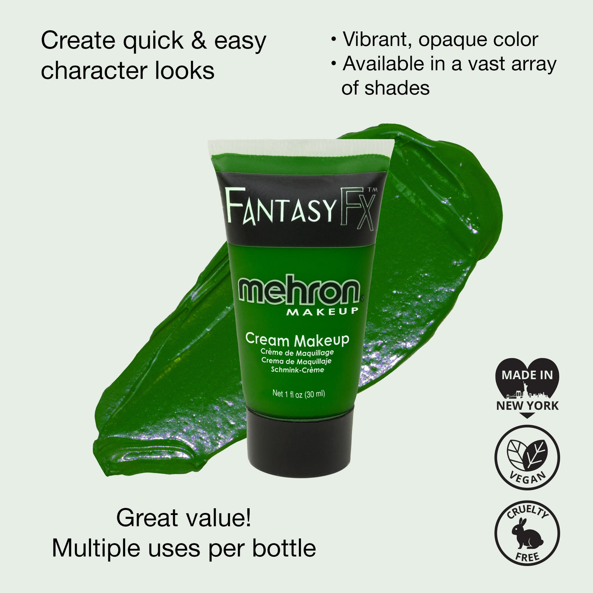 Mehron's revolutionary Fantasy FX formula glides onto the skin like cream make-up but since it's water-based it doesn't have to be set with powder and removes easily with soap and water. This face & body paint is highly pigmented, vegan, and comes in a convenient 30 ml squeeze tube for quick and easy make-up application. This face paint is great for both kids and adults and is ideal for quick Halloween and costume makeup.