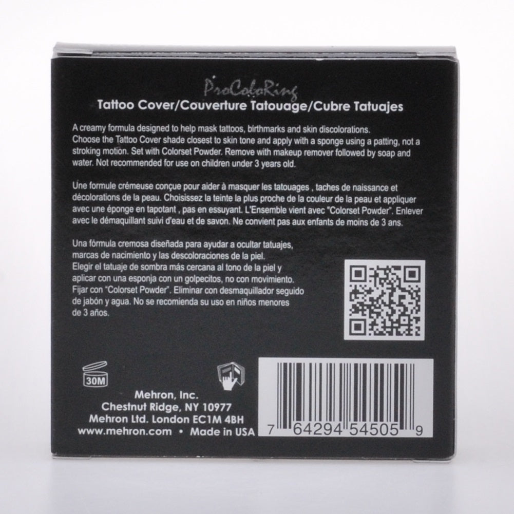 Artist Tip: Once Tattoo Cover is set, apply cream makeup over Tattoo Cover (again with a patting motion). Press Colorset Powder using a Powder Puff into final makeup design. Mist Barrier Spray over area to seal and protect final makeup application.