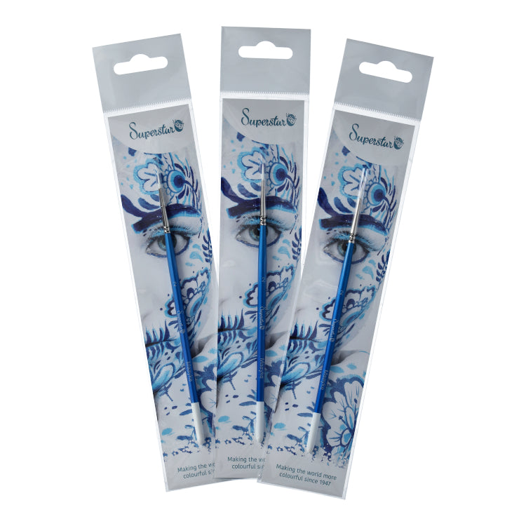 Superstar Round Bushes come in a variety of sizes from 0 up to 12 to achieve thinner or thicker strokes. The Superstar Round Brush holds its point, the bristles are strong and they glide the paint on the skin.